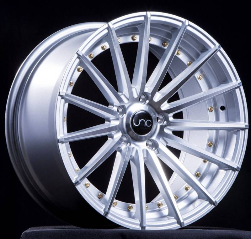 JNC Wheels Rim JNC042 Silver Machined Face Gold Rivets 18x8.5 5x112 ET35 66.66CB