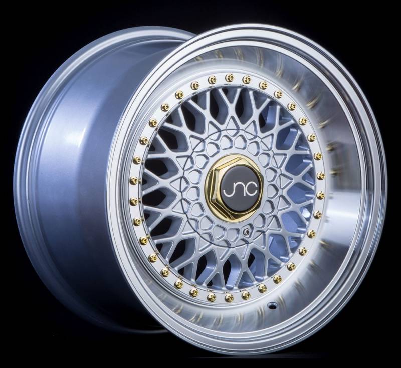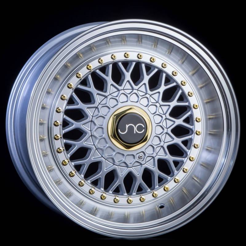 JNC Wheels Rim JNC004S Silver Machined Lip Gold Rivets 17x8.5 5x100/5x114.3 ET15