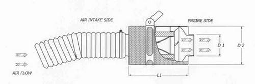 The CDA filtering system is composed of a cylindrical carbon fibre airbox containing a washable filtering element. The choice of this composite material is due to the fact that carbon has low thermal conductivity allowing insulation from the engine heat to the aspirated air. Replacing the original airbox with the CDA, fresh air is channelled directly to the filter, thermally insulated inside the carbon airbox and then conveyed to the engine through an air flow deflector with minimum loss of power.