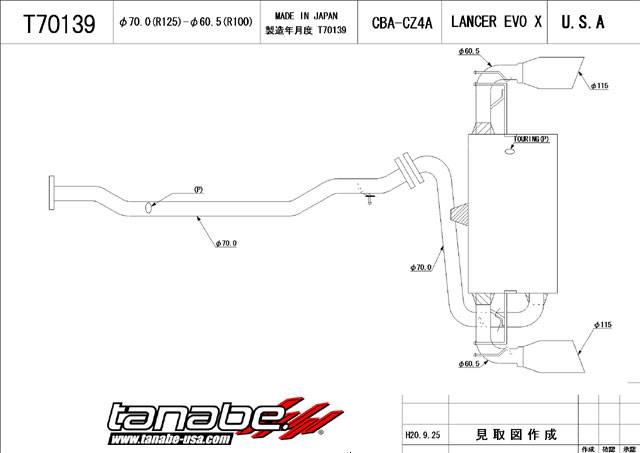 Tanabe Medalion Touring Exhaust System 08-13 Mitsubishi Lancer EVO10