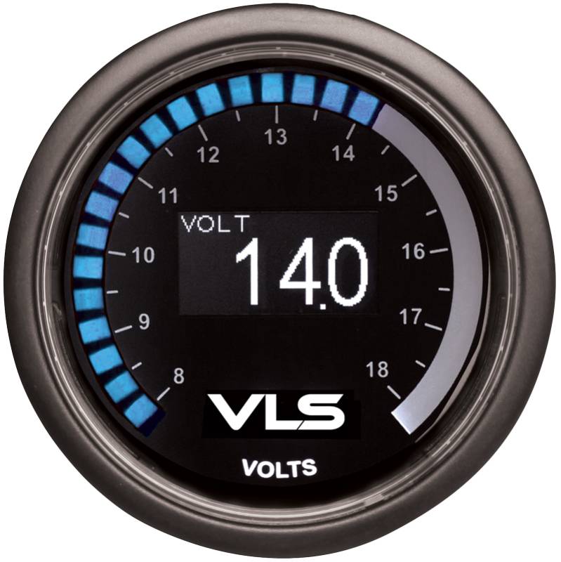 The Revel VLS voltage gauge monitors voltage levels from 8 volts up to 18 volts. The OLED screen allows for easy readings from any viewing angle, and a 30 LED outer ring for viewing at a quick glance.
