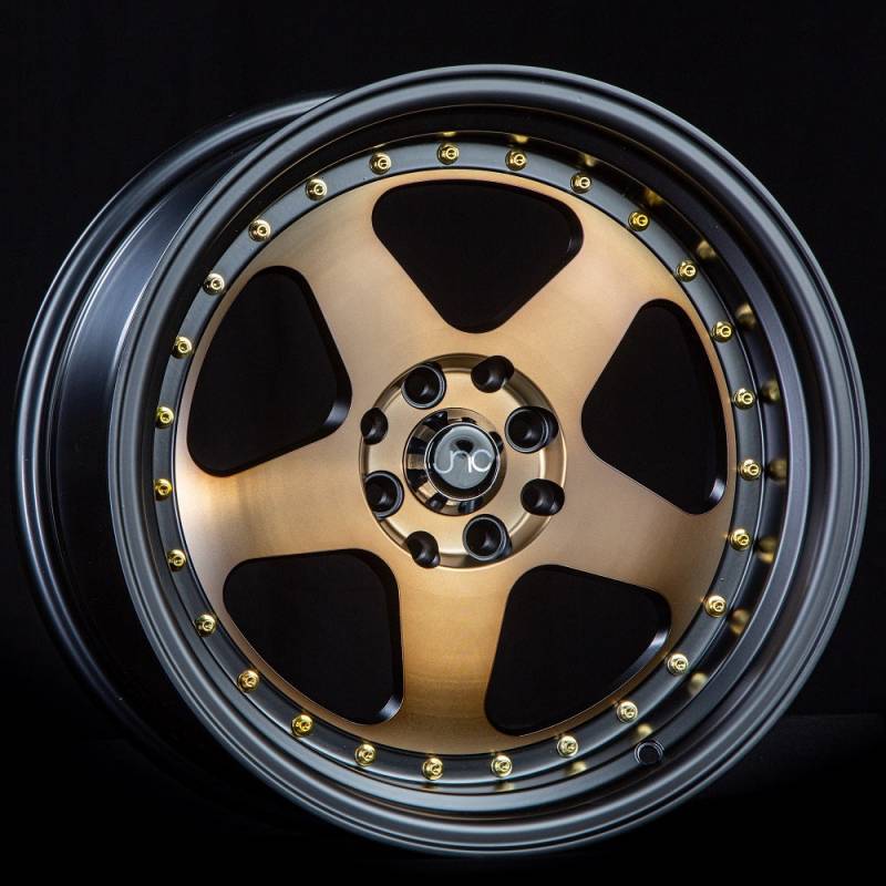 JNC Wheels Rim JNC010 Matte Bronze Black Lip Gold Rivets 17X9 4X100/114.3 ET25