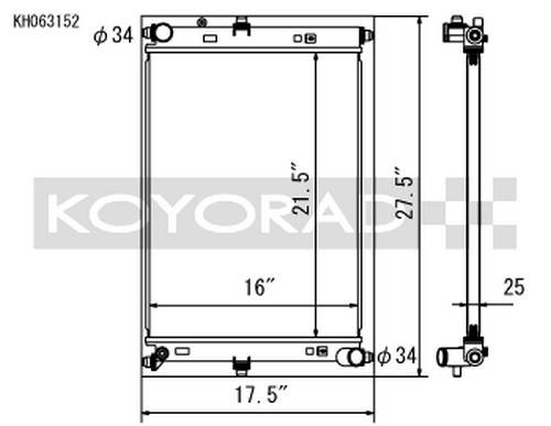 The Hyper V-Core Series is the newest to the Koyorad | Koyo All Aluminum Racing Radiator line up. An engine's cooling system in many newer vehicles are suffering due to limited space and crowding which affects air circulation. Our new ultra efficient Hyper V core was developed specifically for vehicles which see extreme heat, are limited in space, and where the factory inlet/outlet locations eliminate the option for a proper N-FLO design. The Hyper V Series radiators have a specially designed fin and tube pitch which significantly increases its surface area while still allowing for excellent air circulation through the radiator. The Hyper V-Core series is the perfect solution where space savings and high performance is a must. Unless noted otherwise, all Koyorad Hyper V-Series All Aluminum Radiators are Nocolok brazed, designed as a factory fit, direct bolt in with no engine modifications necessary, and retain mounts for the stock fan shrouds and fans. See notes in individual item descriptions for details.