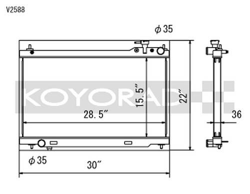 Designed for applications where engine configuration/size cause clearances issues for thicker core radiators. In this case, the 36mm V-Core Series will suit your needs. Intended for both circuit and daily use. Unless noted otherwise, all Koyorad V-Series All Aluminum Radiators are Nocolok brazed, designed as a factory fit, direct bolt in with no engine modifications necessary, and retain mounts for the stock fan shrouds and fans. See notes in individual item descriptions for details.