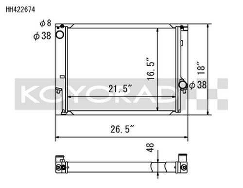 This radiator features Koyorad's "HH Series" 48mm radiator core which was developed to increase coolant volume, promote proper air flow and coolant circulation.