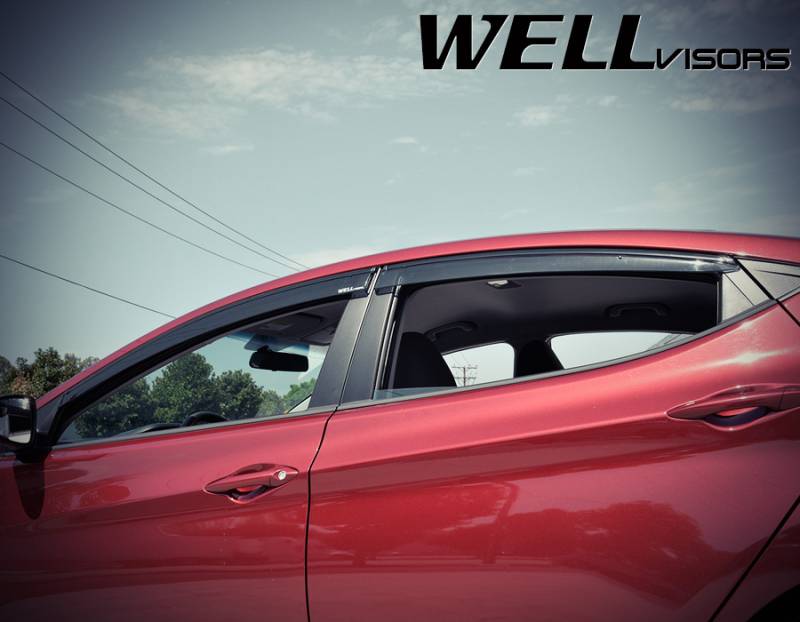 WellVisors Side Window Deflectors Hyundai Elantra Sedan 11-16 With Black Trim