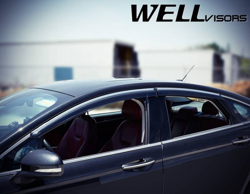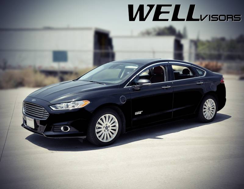WellVisors Side Window Deflectors Ford Fusion Sedan 13-20 with Chrome Trim