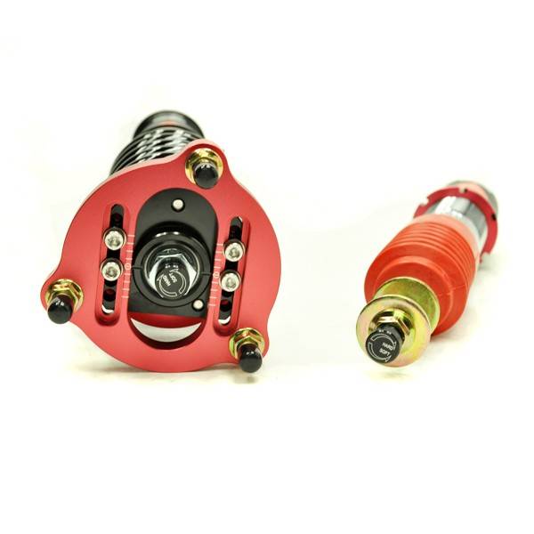 Godspeed Project's MAX is our premier single-adjustable coilover suspension kit. These coilovers are designed to be a streetable race built coilover at an affordable price. It features a monotube damper that is made out of a carbon seamless steel 52mm tube with a 44mm internal piston providing maximum damper response. The cold-bent springs are made from high strength SAE9252 steel to optimize the balance between performance and comfort. Using high quality shock oil made in Italy, Godspeed Project can guarantee exceptional damper performance at any temperature on and off the track. The top of the shock is attached to the car using a high quality top hat that features a high performance bearing pillow ball mount (when applicable). The bottom shock brackets are made out of a T7075 forged aluminum or carbon steel brackets for lighter weight without sacrificing durability which also includes brake line brackets (when applicable). The MAX offers 40 level of damper adjustability which can be set to your preference.