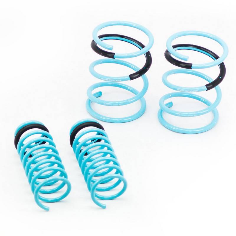 Godspeed Project's performance lowering springs are cold wound on coil winding machine with SAE 9254 spring wire material, one of the ideal materials available. Manufacturing Process involves steel material going through heat treatments before winding into coils, these are necessary steps in order to deliver an outstanding ultra high tensile strength and provide equal spring rates that are extremely durable in order to resist premature "sagging". The end result of this process generates a spring that specifically offers improved vehicle handling and response capabilities while maintaining a very smooth yet comfortable ride experience. Each spring has been carefully precision tested and inspected in order to provide outstanding handling, response, control and balance throughout the suspension of your vehicle. These quality made performance lowering springs designed to work with OEM shocks and offer a generous drop to your vehicle while remaining at a comfortable daily ride height in order to avoid bottoming-out and clearance issues. Not only lowering your vehicle will improve vehicle handling, will also enhance overall appearance.