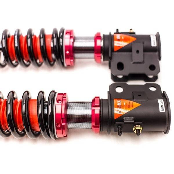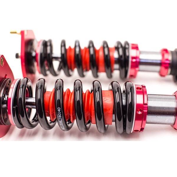 Godspeed Project's MAX is our premier single-adjustable coilover suspension kit. These coilovers are designed to be a streetable race built coilover at an affordable price. It features a monotube damper that is made out of a carbon seamless steel 52mm tube with a 44mm internal piston providing maximum damper response. The cold-bent springs are made from high strength SAE9252 steel to optimize the balance between performance and comfort. Using high quality shock oil made in Italy, Godspeed Project can guarantee exceptional damper performance at any temperature on and off the track. The top of the shock is attached to the car using a high quality top hat that features a high performance bearing pillow ball mount (when applicable). The bottom shock brackets are made out of a T7075 forged aluminum or carbon steel brackets for lighter weight without sacrificing durability which also includes brake line brackets (when applicable). The MAX offers 40 level of damper adjustability which can be set to your preference.
