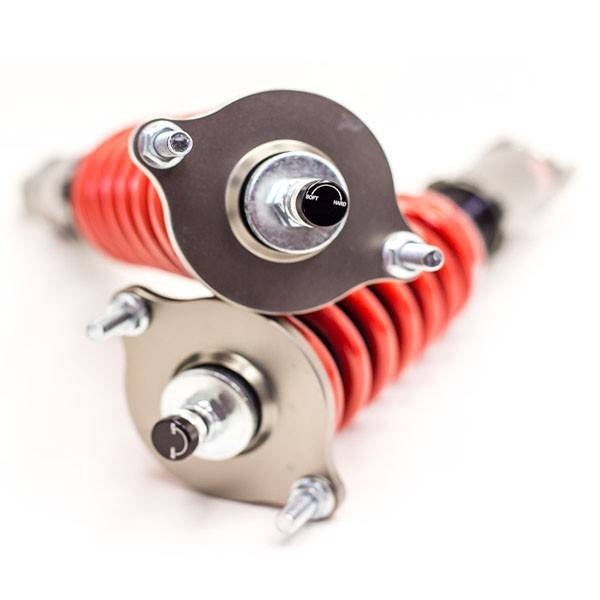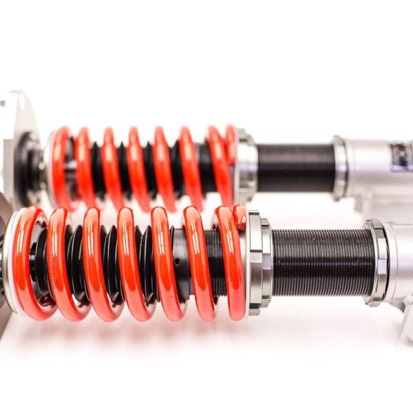 Godspeed Project's MonoRS is our one entity in our family of single-adjustable coilover suspension kits. These coilovers are designed to be a streetable race built coilover at an affordable price. It features a monotube damper that is made out of a carbon seamless steel 52mm tube with a performance internal piston providing maximum damper response. The cold-bent springs are made from high strength SAE9252 steel to optimize the balance between performance and comfort. Using race quality shock oil, Godspeed Project can guarantee exceptional damper performance at any temperature on and off the track. The top of the shock is attached to the car using a high quality top hat that features a high performance Japanese KOYO 6204Z bearing pillow ball mount (when applicable). The bottom shock brackets are made out of a T7075 forged aluminum or carbon steel brackets for lighter weight without sacrificing durability which also includes brake line brackets (when applicable). The MonoRS offers 32 level of damper adjustability which can be set to your preference.