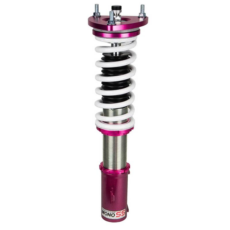 Godspeed Project's MonoSS is our one entity in our family of single-adjustable coilover suspension kits. These coilovers are designed to be a streetable race built coilover at an affordable price. It features a monotube damper that is made out of a carbon seamless steel 52mm tube with a performance internal piston providing maximum damper response. The cold-bent springs are made from high strength SAE9252 steel to optimize the balance between performance and comfort. Using race quality shock oil, Godspeed Project can guarantee exceptional damper performance at any temperature on and off the track. The top of the shock is attached to the car using a high quality top hat that features a high performance Japanese KOYO 6204Z bearing pillow ball mount (when applicable). The bottom shock brackets are made out of a T7075 forged aluminum or carbon steel brackets for lighter weight without sacrificing durability which also includes brake line brackets (when applicable). The MonoSS offers 16 level of damper adjustability which can be set to your preference.