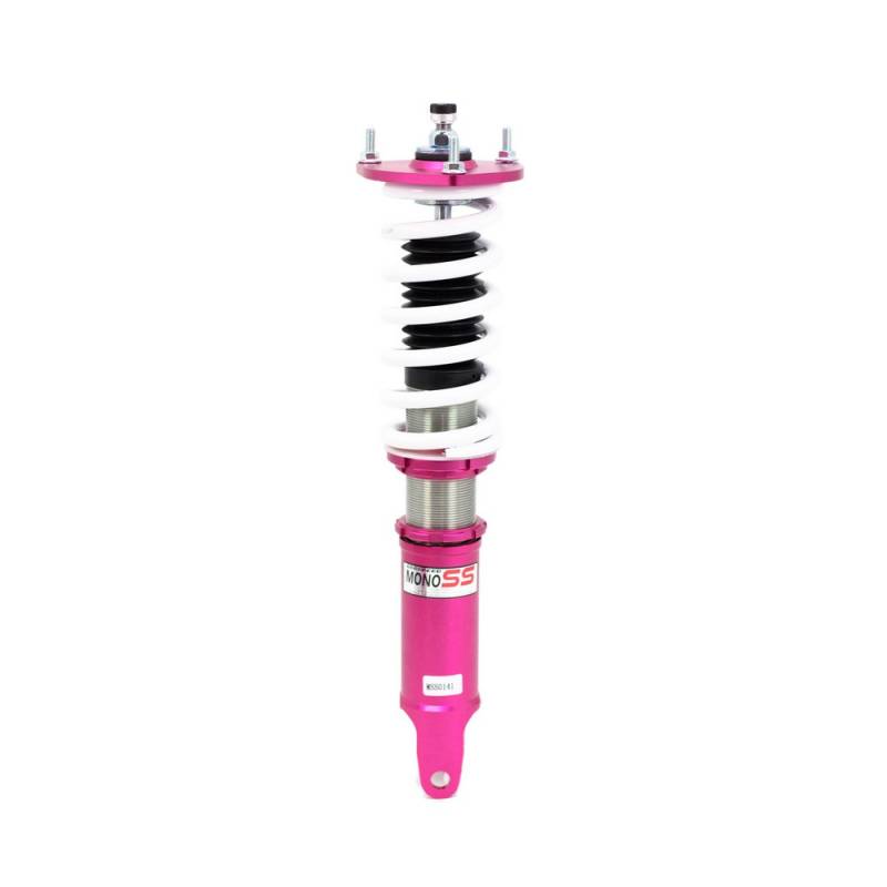Godspeed Project's MonoSS is our one entity in our family of single-adjustable coilover suspension kits. These coilovers are designed to be a streetable race built coilover at an affordable price. It features a monotube damper that is made out of a carbon seamless steel 52mm tube with a performance internal piston providing maximum damper response. The cold-bent springs are made from high strength SAE9252 steel to optimize the balance between performance and comfort. Using race quality shock oil, Godspeed Project can guarantee exceptional damper performance at any temperature on and off the track. The top of the shock is attached to the car using a high quality top hat that features a high performance Japanese KOYO 6204Z bearing pillow ball mount (when applicable). The bottom shock brackets are made out of a T7075 forged aluminum or carbon steel brackets for lighter weight without sacrificing durability which also includes brake line brackets (when applicable). The MonoSS offers 16 level of damper adjustability which can be set to your preference.