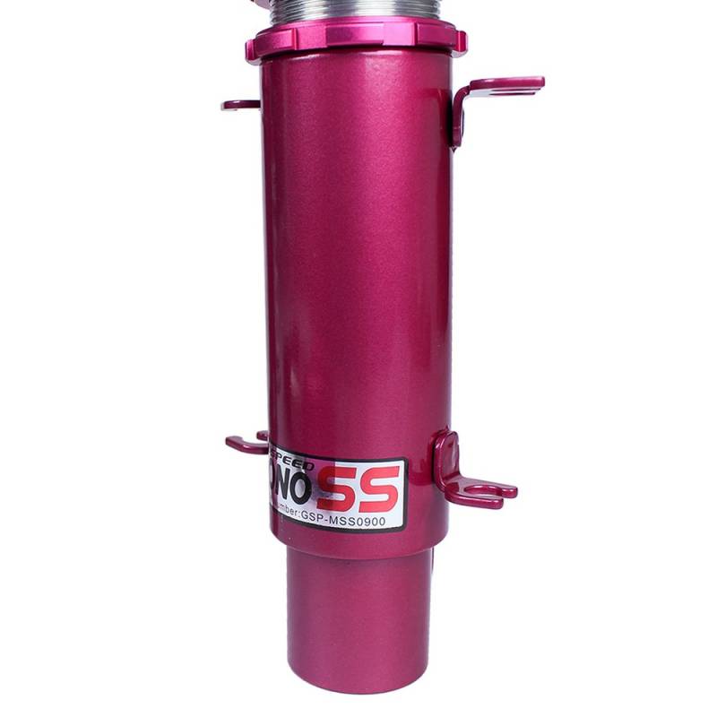 Godspeed Project's MonoSS is our one entity in our family of single-adjustable coilover suspension kits. These coilovers are designed to be a streetable race built coilover at an affordable price. It features a monotube damper that is made out of a carbon seamless steel 52mm tube with a performance internal piston providing maximum damper response. The cold-bent springs are made from high strength SAE9252 steel to optimize the balance between performance and comfort. Using race quality shock oil, Godspeed Project can guarantee exceptional damper performance at any temperature on and off the track. The top of the shock is attached to the car using a high quality top hat that features a high performance Japanese KOYO 6204Z bearing pillow ball mount (when applicable). The bottom shock brackets are made out of a T7075 forged aluminum or carbon steel brackets for lighter weight without sacrificing durability which also includes brake line brackets (when applicable). The MonoSS offers 16 level of damper adjustability which can be set to your preference.