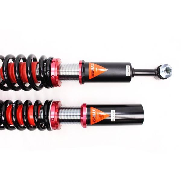 Godspeed Project's MAX is our premier single-adjustable coilover suspension kit. These coilovers are designed to be a streetable race built coilover at an affordable price. It features a monotube damper that is made out of a carbon seamless steel 52mm tube with a 44mm internal piston providing maximum damper response. The cold-bent springs are made from high strength SAE9252 steel to optimize the balance between performance and comfort. Using high quality shock oil made in Italy, Godspeed Project can guarantee exceptional damper performance at any temperature on and off the track. The top of the shock is attached to the car using a high quality top hat that features a high performance bearing pillow ball mount (when applicable). The bottom shock brackets are made out of a T7075 forged aluminum or carbon steel brackets for lighter weight without sacrificing durability which also includes brake line brackets (when applicable). The MAX offers 40 level of damper adjustability which can be set to your preference.