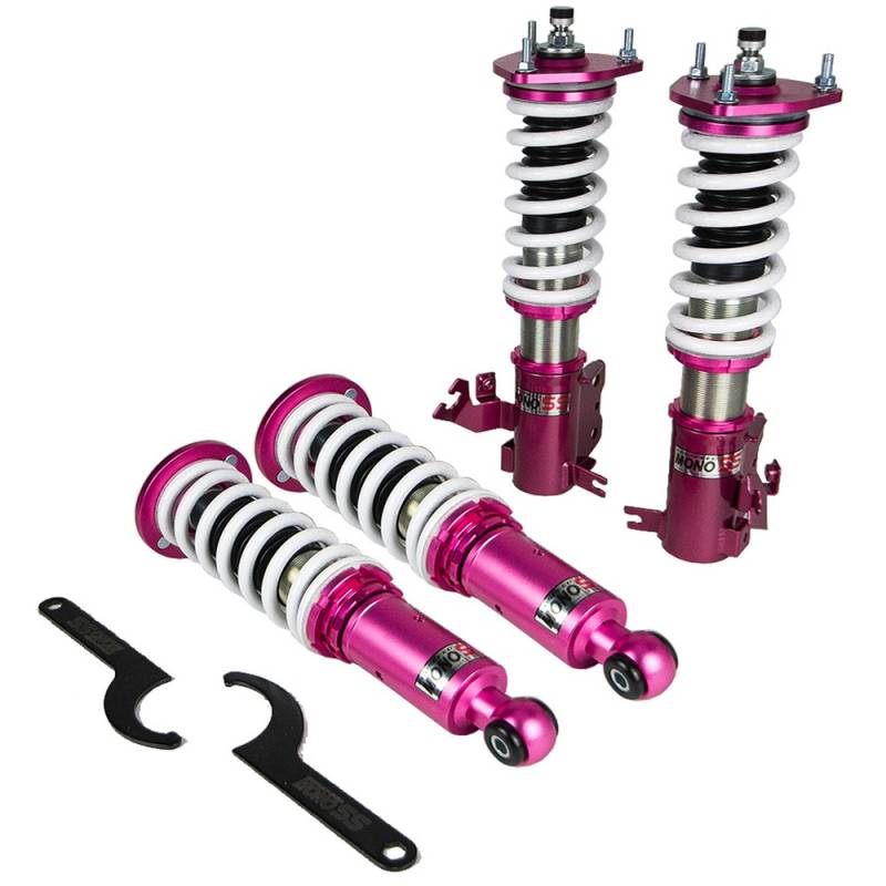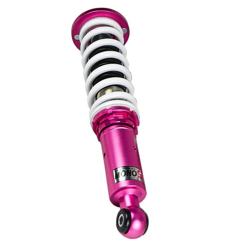 Godspeed Project's MonoSS is our one entity in our family of single-adjustable coilover suspension kits. These coilovers are designed to be a streetable race built coilover at an affordable price. It features a monotube damper that is made out of a carbon seamless steel 52mm tube with a performance internal piston providing maximum damper response. The cold-bent springs are made from high strength SAE9252 steel to optimize the balance between performance and comfort. Using race quality shock oil, Godspeed Project can guarantee exceptional damper performance at any temperature on and off the track. The top of the shock is attached to the car using a high quality top hat that features a high performance Japanese KOYO 6204Z bearing pillow ball mount (when applicable). The bottom shock brackets are made out of a T7075 forged aluminum or carbon steel brackets for lighter weight without sacrificing durability which also includes brake line brackets (when applicable). The MonoSS offers 16 level of damper adjustability which can be set to your preference.