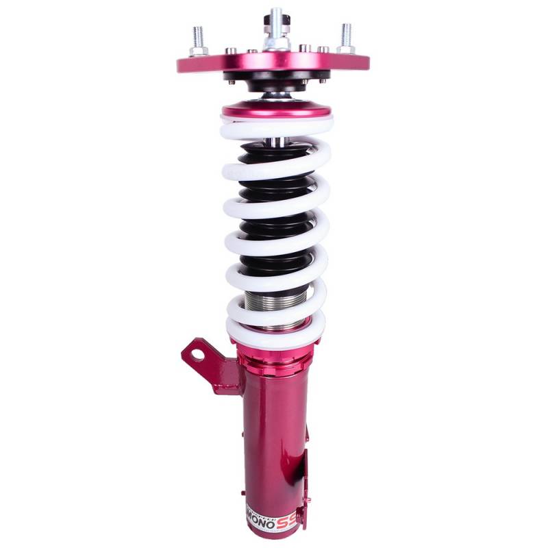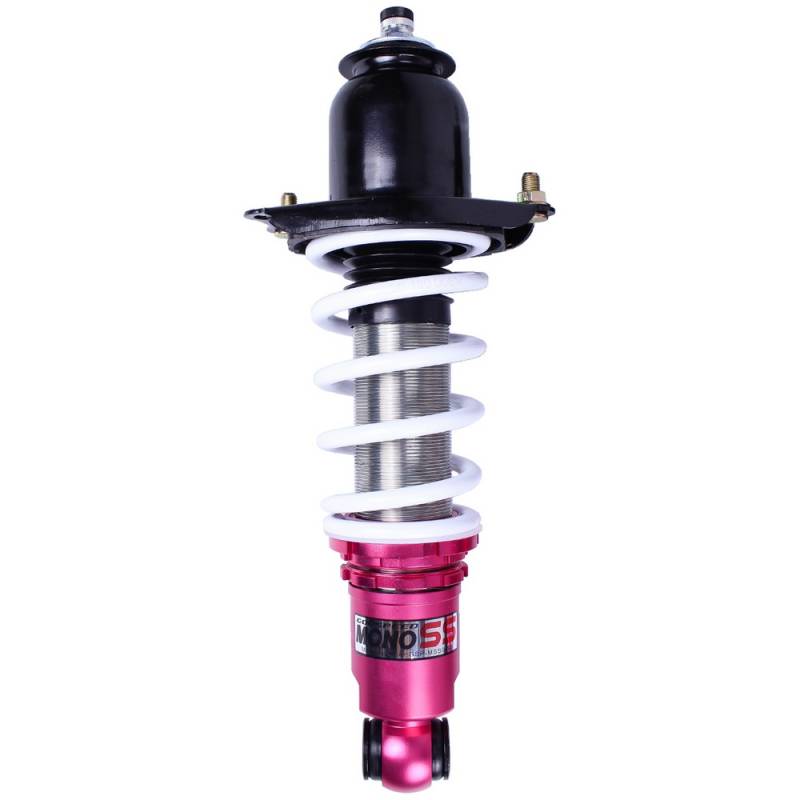 Godspeed Project's MonoSS is our one entity in our family of single-adjustable coilover suspension kits. These coilovers are designed to be a streetable race built coilover at an affordable price. It features a monotube damper that is made out of a carbon seamless steel 52mm tube with a performance internal piston providing maximum damper response. The cold-bent springs are made from high strength SAE9252 steel to optimize the balance between performance and comfort. Using race quality shock oil, Godspeed Project can guarantee exceptional damper performance at any temperature on and off the track. The top of the shock is attached to the car using a high quality top hat that features a high performance Japanese KOYO 6204Z bearing pillow ball mount (when applicable). The bottom shock brackets are made out of a T7075 forged aluminum or carbon steel brackets for lighter weight without sacrificing durability which also includes brake line brackets (when applicable). The MonoSS offers 16 level of damper adjustability which can be set to your preference.
