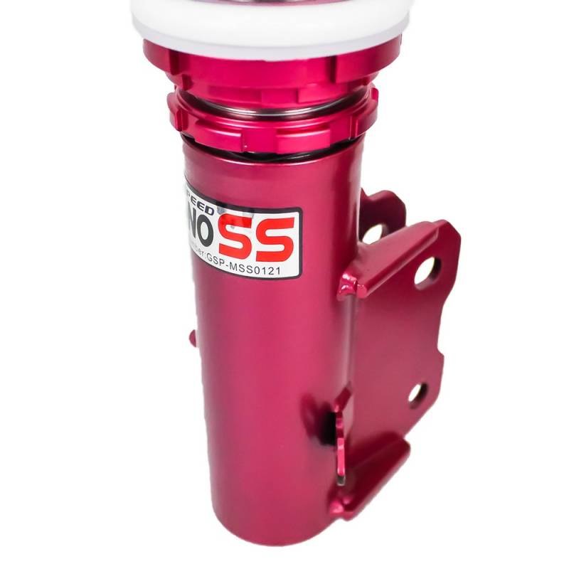 Godspeed Project's MonoSS is our one entity in our family of single-adjustable coilover suspension kits. These coilovers are designed to be a streetable race built coilover at an affordable price. It features a monotube damper that is made out of a carbon seamless steel 52mm tube with a performance internal piston providing maximum damper response. The cold-bent springs are made from high strength SAE9252 steel to optimize the balance between performance and comfort. Using race quality shock oil, Godspeed Project can guarantee exceptional damper performance at any temperature on and off the track. The top of the shock is attached to the car using a high quality top hat that features a high performance Japanese KOYO 6204Z bearing pillow ball mount (when applicable). The bottom shock brackets are made out of a T7075 forged aluminum or carbon steel brackets for lighter weight without sacrificing durability which also includes brake line brackets (when applicable). The MonoSS offers 16 level of damper adjustability which can be set to your preference.