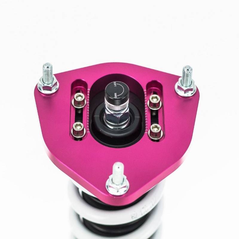 Godspeed Project's MonoSS is our one entity in our family of single-adjustable coilover suspension kits. These coilovers are designed to be a streetable race built coilover at an affordable price. It features a monotube damper that is made out of a carbon seamless steel 52mm tube with a performance internal piston providing maximum damper response. The cold-bent springs are made from high strength SAE9252 steel to optimize the balance between performance and comfort. Using race quality shock oil, Godspeed Project can guarantee exceptional damper performance at any temperature on and off the track. The top of the shock is attached to the car using a high quality top hat that features a high performance Japanese KOYO 6204Z bearing pillow ball mount (when applicable). The bottom shock brackets are made out of a T7075 forged aluminum or carbon steel brackets for lighter weight without sacrificing durability which also includes brake line brackets (when applicable). The MonoSS offers 16 level of damper adjustability which can be set to your preference.