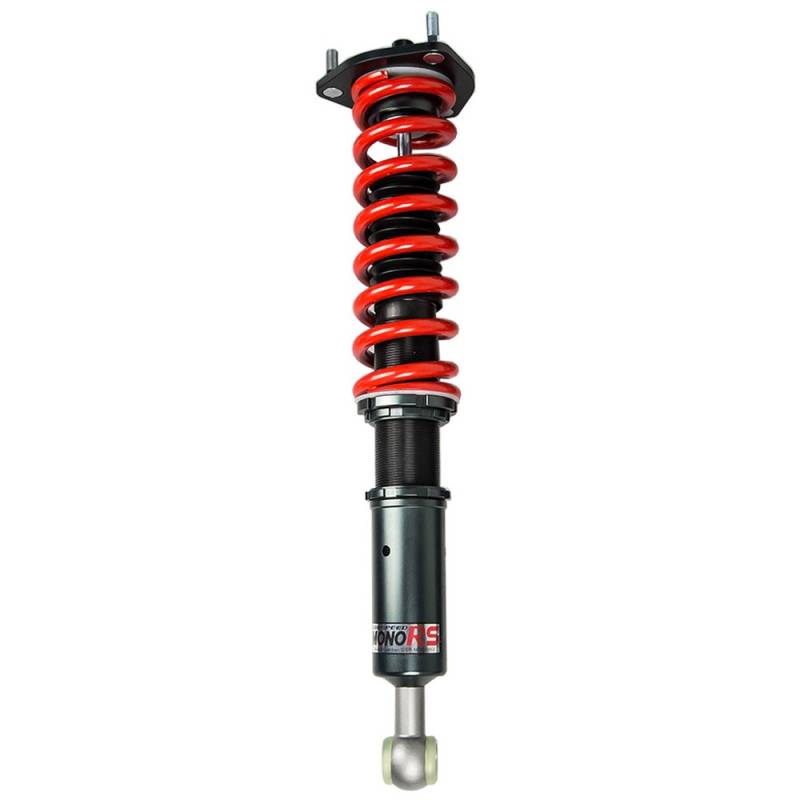 Godspeed Project's MonoRS is our one entity in our family of single-adjustable coilover suspension kits. These coilovers are designed to be a streetable race built coilover at an affordable price. It features a monotube damper that is made out of a carbon seamless steel 52mm tube with a performance internal piston providing maximum damper response. The cold-bent springs are made from high strength SAE9252 steel to optimize the balance between performance and comfort. Using race quality shock oil, Godspeed Project can guarantee exceptional damper performance at any temperature on and off the track. The top of the shock is attached to the car using a high quality top hat that features a high performance Japanese KOYO 6204Z bearing pillow ball mount (when applicable). The bottom shock brackets are made out of a T7075 forged aluminum or carbon steel brackets for lighter weight without sacrificing durability which also includes brake line brackets (when applicable). The MonoRS offers 32 level of damper adjustability which can be set to your preference.