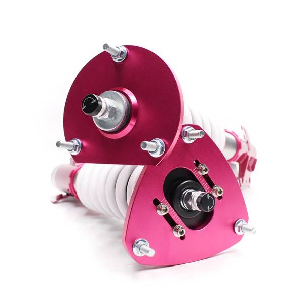 Godspeed Project's MonoSS is our one entity in our family of single-adjustable coilover suspension kits. These coilovers are designed to be a streetable race built coilover at an affordable price. It features a monotube damper that is made out of a carbon seamless steel 52mm tube with a performance internal piston providing maximum damper response. The cold-bent springs are made from high strength SAE9252 steel to optimize the balance between performance and comfort. Using race quality shock oil, Godspeed Project can guarantee exceptional damper performance at any temperature on and off the track. The top of the shock is attached to the car using a high quality top hat that features a high performance Japanese KOYO 6204Z bearing pillow ball mount (when applicable). The bottom shock brackets are made out of a T7075 forged aluminum or carbon steel brackets for lighter weight without sacrificing durability which also includes brake line brackets (when applicable). The MonoSS offers 16 level of damper adjustability which can be set to your preference.