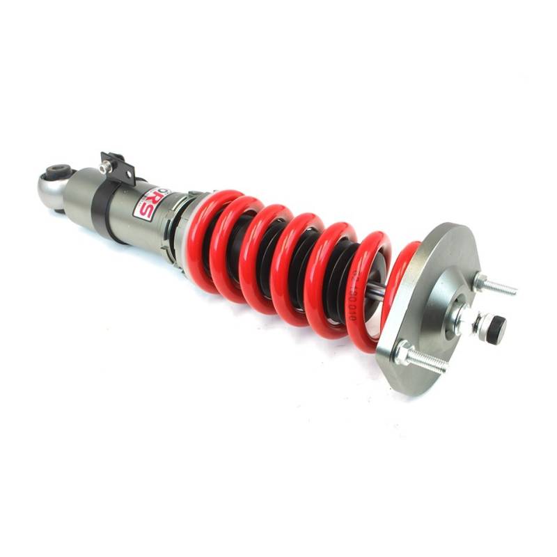 Godspeed Project's MonoRS is our one entity in our family of single-adjustable coilover suspension kits. These coilovers are designed to be a streetable race built coilover at an affordable price. It features a monotube damper that is made out of a carbon seamless steel 52mm tube with a performance internal piston providing maximum damper response. The cold-bent springs are made from high strength SAE9252 steel to optimize the balance between performance and comfort. Using race quality shock oil, Godspeed Project can guarantee exceptional damper performance at any temperature on and off the track. The top of the shock is attached to the car using a high quality top hat that features a high performance Japanese KOYO 6204Z bearing pillow ball mount (when applicable). The bottom shock brackets are made out of a T7075 forged aluminum or carbon steel brackets for lighter weight without sacrificing durability which also includes brake line brackets (when applicable). The MonoRS offers 32 level of damper adjustability which can be set to your preference.