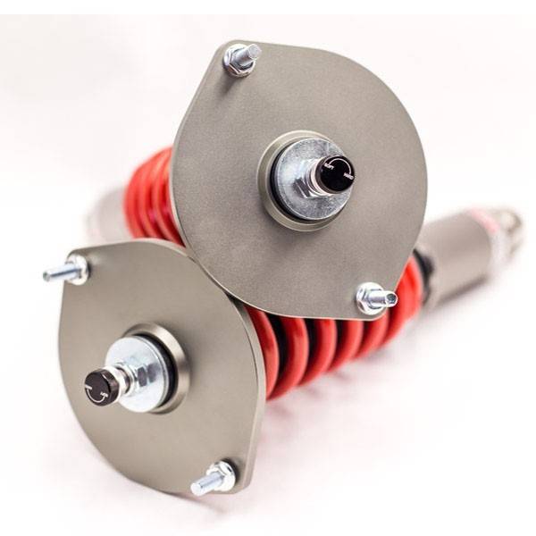 Godspeed Project's MonoRS is our one entity in our family of single-adjustable coilover suspension kits. These coilovers are designed to be a streetable race built coilover at an affordable price. It features a monotube damper that is made out of a carbon seamless steel 52mm tube with a performance internal piston providing maximum damper response. The cold-bent springs are made from high strength SAE9252 steel to optimize the balance between performance and comfort. Using race quality shock oil, Godspeed Project can guarantee exceptional damper performance at any temperature on and off the track. The top of the shock is attached to the car using a high quality top hat that features a high performance Japanese KOYO 6204Z bearing pillow ball mount (when applicable). The bottom shock brackets are made out of a T7075 forged aluminum or carbon steel brackets for lighter weight without sacrificing durability which also includes brake line brackets (when applicable). The MonoRS offers 32 level of damper adjustability which can be set to your preference.
