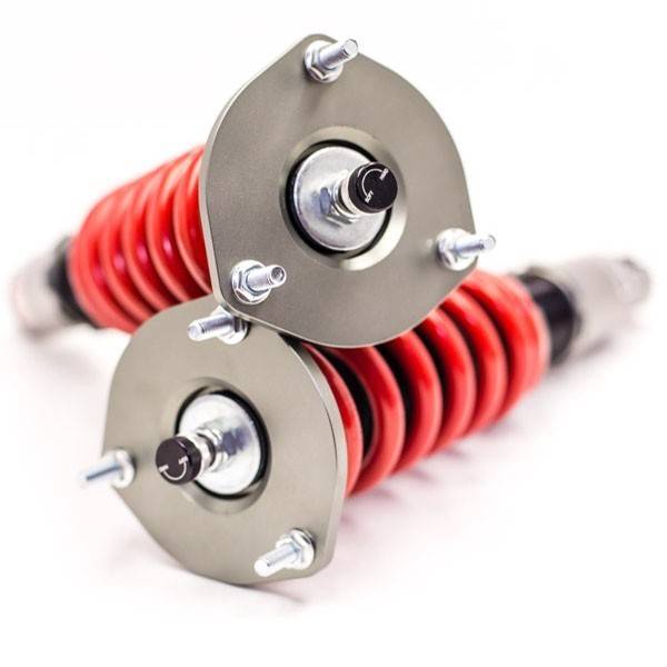 Godspeed Project's MonoRS is our one entity in our family of single-adjustable coilover suspension kits. These coilovers are designed to be a streetable race built coilover at an affordable price. It features a monotube damper that is made out of a carbon seamless steel 52mm tube with a performance internal piston providing maximum damper response. The cold-bent springs are made from high strength SAE9252 steel to optimize the balance between performance and comfort. Using race quality shock oil, Godspeed Project can guarantee exceptional damper performance at any temperature on and off the track. The top of the shock is attached to the car using a high quality top hat that features a high performance Japanese KOYO 6204Z bearing pillow ball mount (when applicable). The bottom shock brackets are made out of a T7075 forged aluminum or carbon steel brackets for lighter weight without sacrificing durability which also includes brake line brackets (when applicable). The MonoRS offers 32 level of damper adjustability which can be set to your preference.