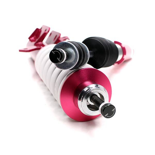 Godspeed Project's MonoSS is our one entity in our family of single-adjustable coilover suspension kits. These coilovers are designed to be a streetable race built coilover at an affordable price. It features a monotube damper that is made out of a carbon seamless steel 52mm tube with a performance internal piston providing maximum damper response. The cold-bent springs are made from high strength SAE9252 steel to optimize the balance between performance and comfort. Using race quality shock oil, Godspeed Project can guarantee exceptional damper performance at any temperature on and off the track. The top of the shock is attached to the car using a high quality top hat that features a high performance Japanese KOYO 6204Z bearing pillow ball mount (when applicable). The bottom shock brackets are made out of a T7075 forged aluminum or carbon steel brackets for lighter weight without sacrificing durability which also includes brake line brackets (when applicable). The MonoSS offers 16 level of damper adjustability which can be set to your preference.