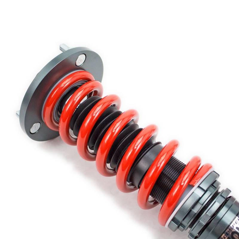 Godspeed Project's MonoRS is our one entity in our family of single-adjustable coilover suspension kits. These coilovers are designed to be a streetable race built coilover at an affordable price. It features a monotube damper that is made out of a carbon seamless steel 52mm tube with a performance internal piston providing maximum damper response. The cold-bent springs are made from high strength SAE9252 steel to optimize the balance between performance and comfort. Using race quality shock oil, Godspeed Project can guarantee exceptional damper performance at any temperature on and off the track. The top of the shock is attached to the car using a high quality top hat that features a high performance Japanese KOYO 6204Z bearing pillow ball mount (when applicable). The bottom shock brackets are made out of a T7075 forged aluminum or carbon steel brackets for lighter weight without sacrificing durability which also includes brake line brackets (when applicable). The MonoRS offers 32 level of damper adjustability which can be set to your preference.