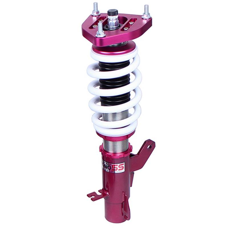 Godspeed Project's MonoSS is our one entity in our family of single-adjustable coilover suspension kits. These coilovers are designed to be a streetable race built coilover at an affordable price. It features a monotube damper that is made out of a carbon seamless steel 52mm tube with a performance internal piston providing maximum damper response. The cold-bent springs are made from high strength SAE9252 steel to optimize the balance between performance and comfort. Using race quality shock oil, Godspeed Project can guarantee exceptional damper performance at any temperature on and off the track. The top of the shock is attached to the car using a high quality top hat that features a high performance Japanese KOYO 6204Z bearing pillow ball mount (when applicable). The bottom shock brackets are made out of a T7075 forged aluminum or carbon steel brackets for lighter weight without sacrificing durability which also includes brake line brackets (when applicable). The MonoSS offers 16 level of damper adjustability which can be set to your preference.