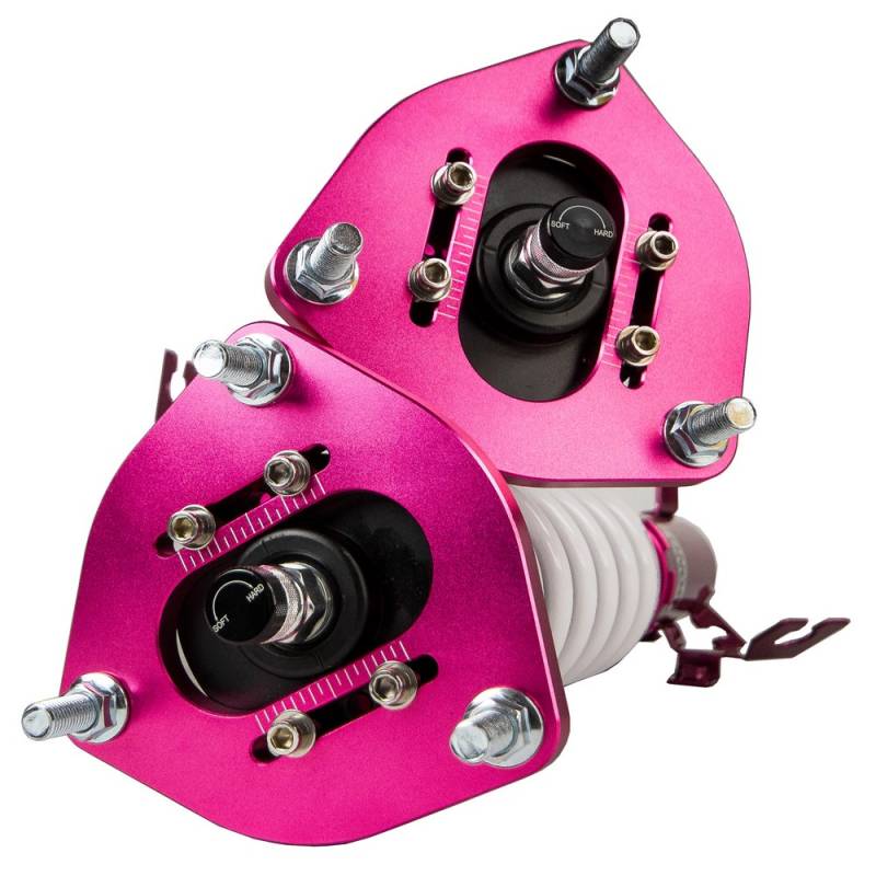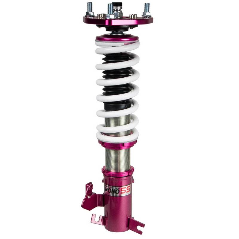 Godspeed Project's MonoSS is our one entity in our family of single-adjustable coilover suspension kits. These coilovers are designed to be a streetable race built coilover at an affordable price. It features a monotube damper that is made out of a carbon seamless steel 52mm tube with a performance internal piston providing maximum damper response. The cold-bent springs are made from high strength SAE9252 steel to optimize the balance between performance and comfort. Using race quality shock oil, Godspeed Project can guarantee exceptional damper performance at any temperature on and off the track. The top of the shock is attached to the car using a high quality top hat that features a high performance Japanese KOYO 6204Z bearing pillow ball mount (when applicable). The bottom shock brackets are made out of a T7075 forged aluminum or carbon steel brackets for lighter weight without sacrificing durability which also includes brake line brackets (when applicable). The MonoSS offers 16 level of damper adjustability which can be set to your preference.