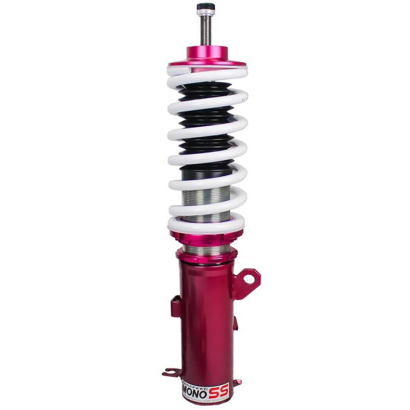 Godspeed Project's MonoSS is our one entity in our family of single-adjustable coilover suspension kits. These coilovers are designed to be a streetable race built coilover at an affordable price. It features a monotube damper that is made out of a carbon seamless steel 52mm tube with a performance internal piston providing maximum damper response. The cold-bent springs are made from high strength SAE9252 steel to optimize the balance between performance and comfort. Using race quality shock oil, Godspeed Project can guarantee exceptional damper performance at any temperature on and off the track. The top of the shock is attached to the car using a high quality top hat that features a high performance Japanese KOYO 6204Z bearing pillow ball mount (when applicable). The bottom shock brackets are made out of a T7075 forged aluminum or carbon steel brackets for lighter weight without sacrificing durability which also includes brake line brackets (when applicable). The MonoSS offers 16 level of damper adjustability which can be set to your preference.