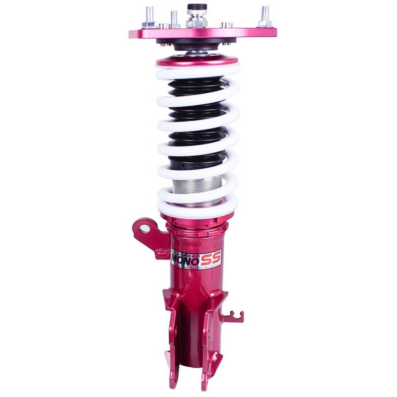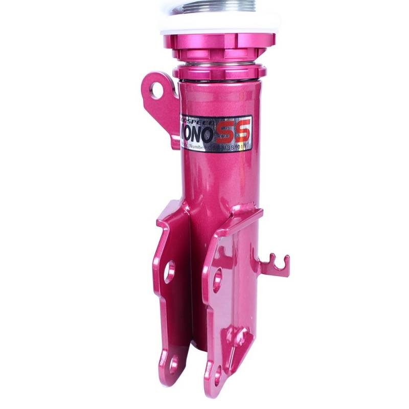 Godspeed Project's MonoSS is our one entity in our family of single-adjustable coilover suspension kits. These coilovers are designed to be a streetable race built coilover at an affordable price. It features a monotube damper that is made out of a carbon seamless steel 52mm tube with a performance internal piston providing maximum damper response. The cold-bent springs are made from high strength SAE9252 steel to optimize the balance between performance and comfort. Using race quality shock oil, Godspeed Project can guarantee exceptional damper performance at any temperature on and off the track. The top of the shock is attached to the car using a high quality top hat that features a high performance Japanese KOYO 6204Z bearing pillow ball mount (when applicable). The bottom shock brackets are made out of a T7075 forged aluminum or carbon steel brackets for lighter weight without sacrificing durability which also includes brake line brackets (when applicable). The MonoSS offers 16 level of damper adjustability which can be set to your preference.