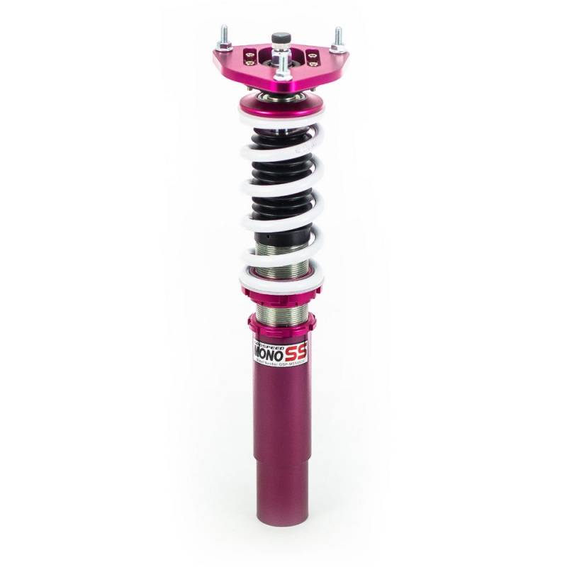 Godspeed Project's MonoSS is our one entity in our family of single-adjustable coilover suspension kits. These coilovers are designed to be a streetable race built coilover at an affordable price. It features a monotube damper that is made out of a carbon seamless steel 52mm tube with a performance internal piston providing maximum damper response. The cold-bent springs are made from high strength SAE9252 steel to optimize the balance between performance and comfort. Using race quality shock oil, Godspeed Project can guarantee exceptional damper performance at any temperature on and off the track. The top of the shock is attached to the car using a high quality top hat that features a high performance Japanese KOYO 6204Z bearing pillow ball mount (when applicable). The bottom shock brackets are made out of a T7075 forged aluminum or carbon steel brackets for lighter weight without sacrificing durability which also includes brake line brackets (when applicable). The MonoSS offers 16 level of damper adjustability which can be set to your preference.