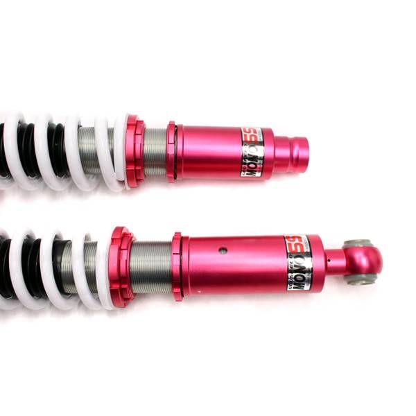 Godspeed Project's MonoSS is our one entity in our family of single-adjustable coilover suspension kits. These coilovers are designed to be a streetable race built coilover at an affordable price. It features a monotube damper that is made out of a carbon seamless steel 52mm tube with a performance internal piston providing maximum damper response. The cold-bent springs are made from high strength SAE9252 steel to optimize the balance between performance and comfort. Using race quality shock oil, Godspeed Project can guarantee exceptional damper performance at any temperature on and off the track. The top of the shock is attached to the car using a high quality top hat that features a high performance Japanese KOYO 6204Z bearing pillow ball mount (when applicable). The bottom shock brackets are made out of a T7075 forged aluminum or carbon steel brackets for lighter weight without sacrificing durability which also includes brake line brackets (when applicable). The MonoSS offers 16 level of damper adjustability which can be set to your preference.