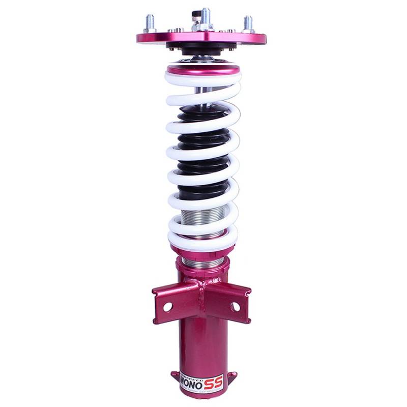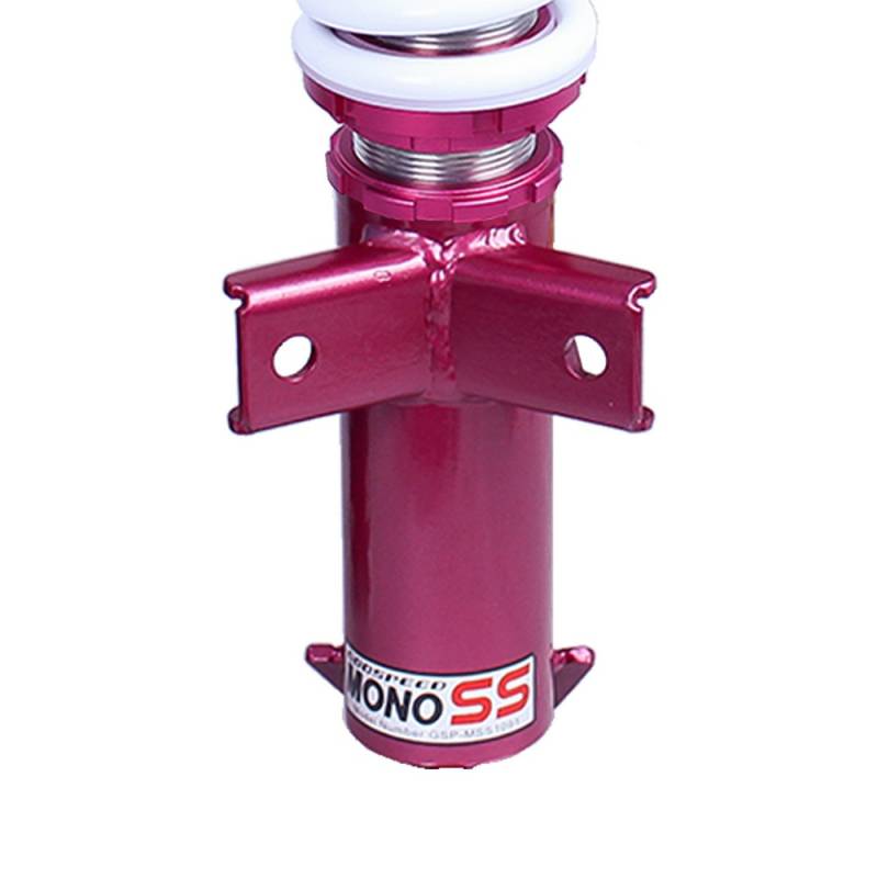 Godspeed Project's MonoSS is our one entity in our family of single-adjustable coilover suspension kits. These coilovers are designed to be a streetable race built coilover at an affordable price. It features a monotube damper that is made out of a carbon seamless steel 52mm tube with a performance internal piston providing maximum damper response. The cold-bent springs are made from high strength SAE9252 steel to optimize the balance between performance and comfort. Using race quality shock oil, Godspeed Project can guarantee exceptional damper performance at any temperature on and off the track. The top of the shock is attached to the car using a high quality top hat that features a high performance Japanese KOYO 6204Z bearing pillow ball mount (when applicable). The bottom shock brackets are made out of a T7075 forged aluminum or carbon steel brackets for lighter weight without sacrificing durability which also includes brake line brackets (when applicable). The MonoSS offers 16 level of damper adjustability which can be set to your preference.