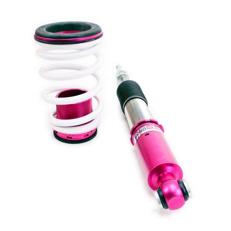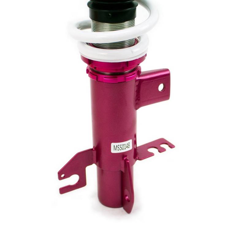 Godspeed Project's MonoSS is our one entity in our family of single-adjustable coilover suspension kits. These coilovers are designed to be a streetable race built coilover at an affordable price. It features a monotube damper that is made out of a carbon seamless steel 52mm tube with a performance internal piston providing maximum damper response. The cold-bent springs are made from high strength SAE9252 steel to optimize the balance between performance and comfort. Using race quality shock oil, Godspeed Project can guarantee exceptional damper performance at any temperature on and off the track. The top of the shock is attached to the car using a high quality top hat that features a high performance Japanese KOYO 6204Z bearing pillow ball mount (when applicable). The bottom shock brackets are made out of a T7075 forged aluminum or carbon steel brackets for lighter weight without sacrificing durability which also includes brake line brackets (when applicable). The MonoSS offers 16 level of damper adjustability which can be set to your preference.