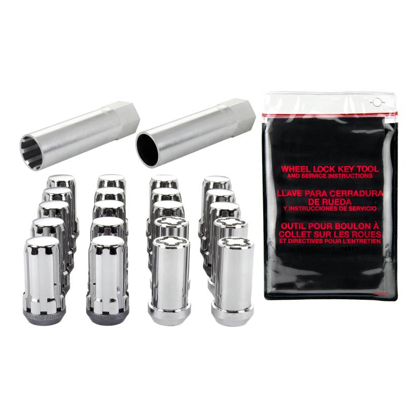 The convenient way to order Tuner wheel locks and lug nuts; contains all the hardware that you need to install 4 wheels and tires.; Why settle for ordinary lug nuts? SplineDrive Lug Nuts combine style and performance.; A no-compromise design engineered to fit small diameter recesses in Tuner style wheels.; SplineDrive lug nuts offer closed-end design, maximum gripping power, more stud engagement and a greater seating surface than socket style lug nuts.; In addition they are 30% lighter in weight.; Like all McGard lug nuts, the chrome plating is guaranteed for life not to rust, chip or peel.; The easy-to-use, one-piece wheel locks function like regular lug nuts, but require a special key tool for installation and removal.; The computer generated key designs allow for an infinite number of key patterns.; McGard manufactures wheel locks and lug nuts in the USA to meet or exceed O.E.M.; standards for safety and durability.; Every lug nut and wheel lock is fully machined from restricted chemistry steel made specifically for McGard and through-hardened for its unsurpassed level of safety.; For use on aluminum cone seat wheels only.; This product may contain globally sourced materials/components.