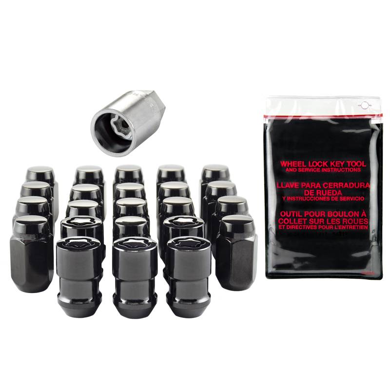 The convenient way to order wheel locks and lug nuts; Contains all the hardware that you need to install 4 road wheels/tires and 1 spare wheel/tire on a Jeep Wrangler.; McGard manufactures wheel locks and lug nuts in the USA to meet or exceed O.E.M. standards for safety and durability.; Presently, McGard is an Original Equipment wheel lock supplier to most automobile brands around the world.; These easy-to-use, one-piece wheel locks function like regular lug nuts, but require a special key tool for installation and removal.; The computer generated key designs allow for an infinite number of key patterns.; McGard lug nuts are guaranteed for life not to rust, chip or peel.; Designed and built for the real world. Think about it, harsh elements, nasty corrosive wheel cleaners, overzealous impact guns, loose fitting lug wrenches and lead-foot drivers. This kind of treatment destroys ordinary lug nuts.; McGard lug nuts can take the punishment and keep your wheels looking beautiful.; Every McGard wheel lock and lug nut is fully machined from restricted chemistry steel made specifically for McGard and through-hardened for its unsurpassed level of security and safety.; For use with steel or aluminum wheels with exposed decorative lug nuts that are tapered at the bottom. This product may contain globally sourced materials/components.