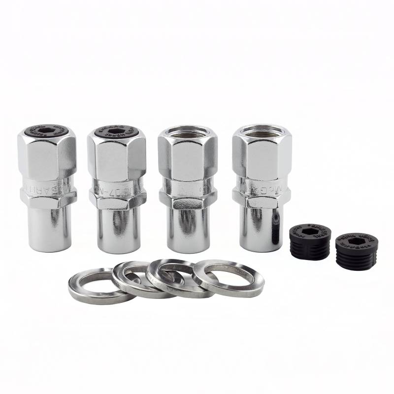 Chrome plated lug nuts lead a tough life.; Think about it, harsh elements, nasty corrosive wheel cleaners and lead-foot drivers.; Not to mention overzealous impact guns and loose fitting lug wrenches.; This kind of treatment destroys ordinary lug nuts which turns even the best looking wheels ugly.; Tough Nuts can take the punishment and keep your wheels looking beautiful.; Tough Nuts are guaranteed for life not to rust, chip or peel.; McGard manufactures lug nuts in the USA to meet or exceed O.E.M.; standards for safety and durability.; Every lug nut is fully machined from restricted chemistry steel made specifically for McGard and through-hardened for its unsurpassed level of safety.; McGard's plating process includes several layers of nickel and one layer of microporous chrome producing a superior finish while protecting against rust.; Tough Nuts are designed and built for the real world, because life is tough.; Open-ended Drag Racing style with a .746 Shank length for use with aluminum wheels that are between 11/16 and 7/8 at the stud hole and have a flat seat.; Contains polished stainless steel washers and black nylon allen plugs.; This product may contain globally sourced materials/components.