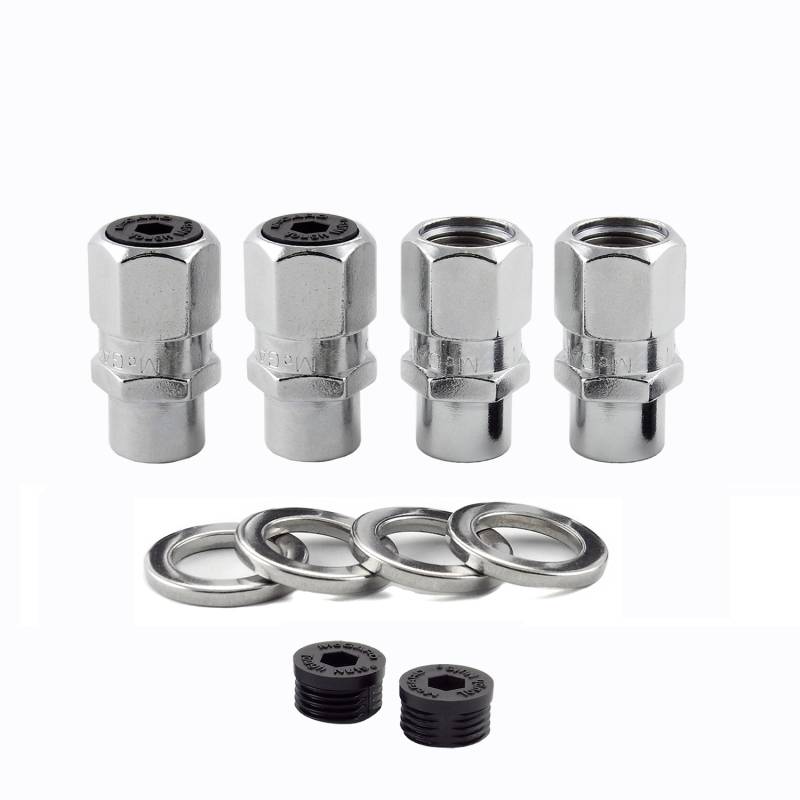 Chrome plated lug nuts lead a tough life.; Think about it, harsh elements, nasty corrosive wheel cleaners and lead-foot drivers.; Not to mention overzealous impact guns and loose fitting lug wrenches.; This kind of treatment destroys ordinary lug nuts which turns even the best looking wheels ugly.; Tough Nuts can take the punishment and keep your wheels looking beautiful.; Tough Nuts are guaranteed for life not to rust, chip or peel.; McGard manufactures lug nuts in the USA to meet or exceed O.E.M.; standards for safety and durability.; Every lug nut is fully machined from restricted chemistry steel made specifically for McGard and through-hardened for its unsurpassed level of safety.; McGard's plating process includes several layers of nickel and one layer of microporous chrome producing a superior finish while protecting against rust.; Tough Nuts are designed and built for the real world, because life is tough.; Open-ended Drag Racing style with a .490 Shank length for use with Centerline Convo Pro and Weld Pro Star wheels.; Contains polished stainless steel washers and black nylon allen plugs.; This product may contain globally sourced materials/components.