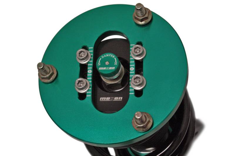 Megan Racing Coil-Over Dampers are the ultimate upgrade to your track or street car. Featuring 32 levels of damper force adjustment, separate spring perch height and shock length adjustment allowing you to retain full suspension stroke and to fine tune your suspension characteristics. These damper kits are then perfectly matched with front and rear Pillow Ball upper mounts, including camber plates integrated with the upper Pillow Ball mounts on strut-type suspension applications.