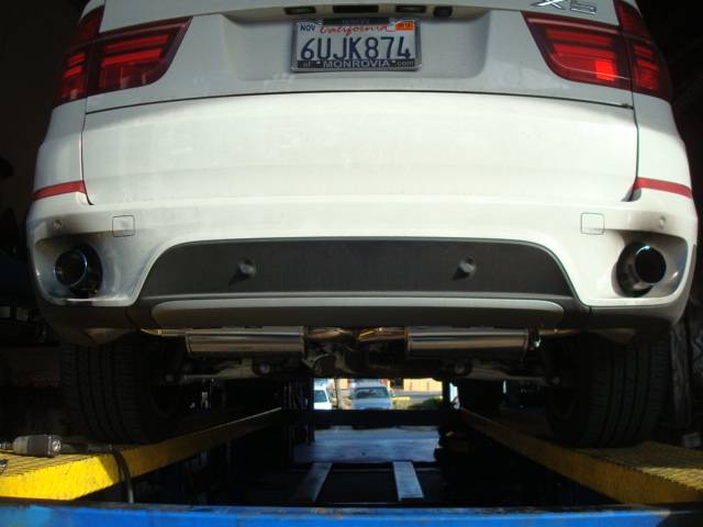 Megan's axle back exhaust system is a good and easy way to add performance and looks to your BMW E70 X5 Series SUV.