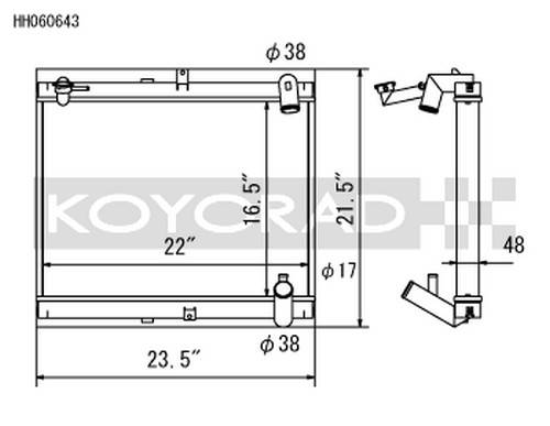 This radiator features Koyorad's "HH Series" 48mm radiator core which was developed to increase coolant volume, promote proper air flow and coolant circulation.