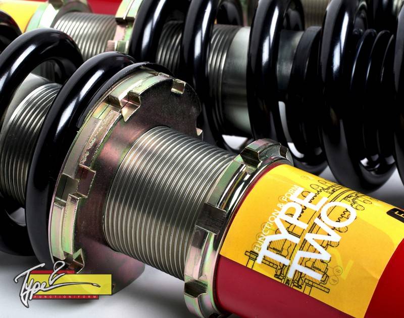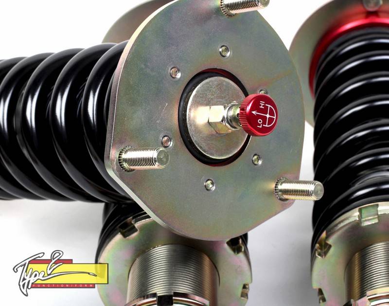 In achieving this, we wanted to make a stronger product to endure the imperfections of the real world. Steel materials have been used for the lower mounts to give the shocks OEM durability. Spring rates are slightly more aggressive than a Type 1, to handle occasional track duties and spirited street driving (although we always suggest safe and smart driving on public roads). Yet this did not sacrifice ride quality. Twin tube shocks are used for durability and a smoother ride on the street. Our goal is to offer you a suspension that can handle the wear and tear of daily driving duties. With the Type 2's 32 levels of dampening adjustment, you can dial in ride and handling characteristics for the street or the track, giving you ultimate versatility.