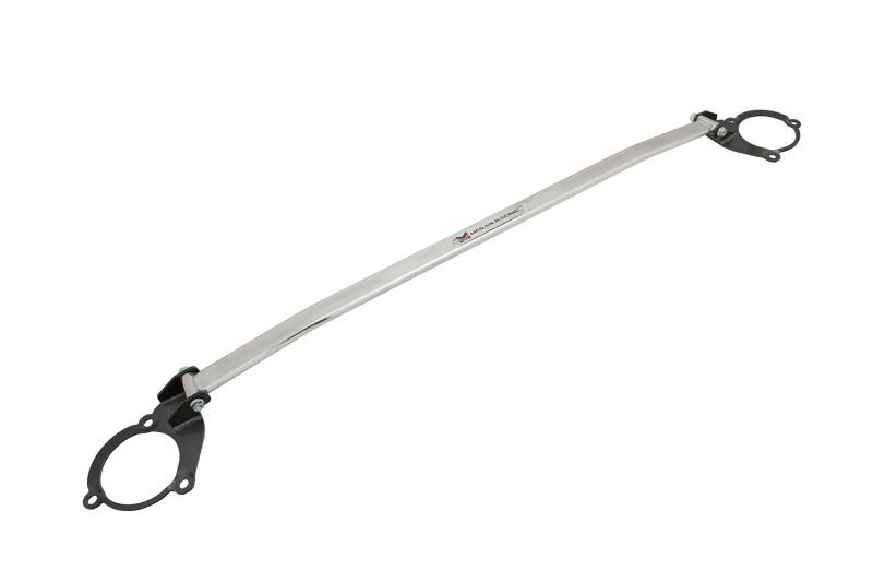 One-Piece Race Spec Strut Tower Bar constructed of strong Aluminum to extremely tight tolerances and then polished to perfection. Designed for the Toyota Camry to decrease body roll, this bar ties the chassis from left to right at critical stress points (Between the shock/strut towers).