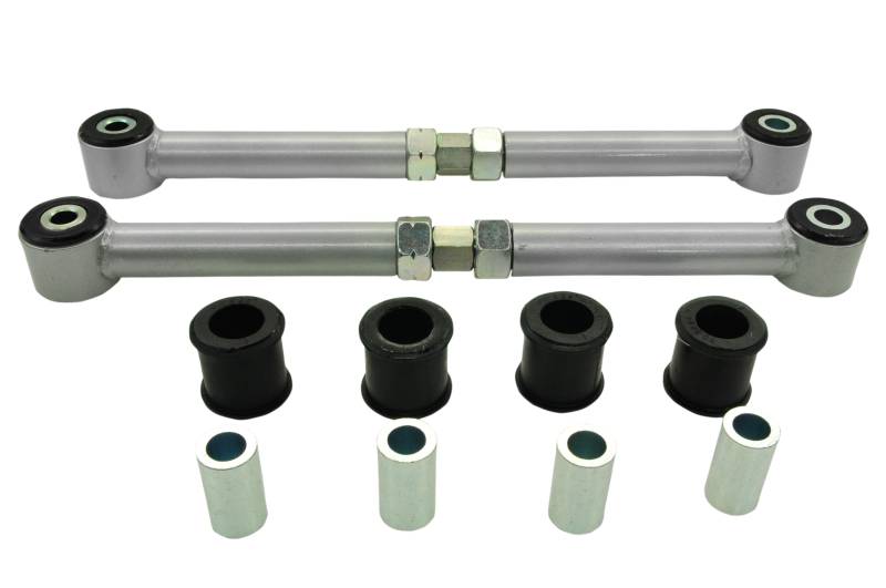 This series of adjustable trailing arms are designed to modify factory camber - toe and track on the rear of Subaru Impreza and Liberty. Use KTA107 as an economical solution for lack of rear toe adjustment particularly on Impreza GD-GH (MY01- on) series. This kit is supplied as 2x adjustable front arms and matching rear arm poly bushings. KTA108 and KTA109 utilise 4 complete adjustable arms with performance low compliance bushings. The result is greater range and more precise adjustment and a more direct connection between body and rear suspension delivering more predictable dynamic behaviour. Left-right-hand thread adjustment turn-buckle nut allows for easy on-car adjustment.
