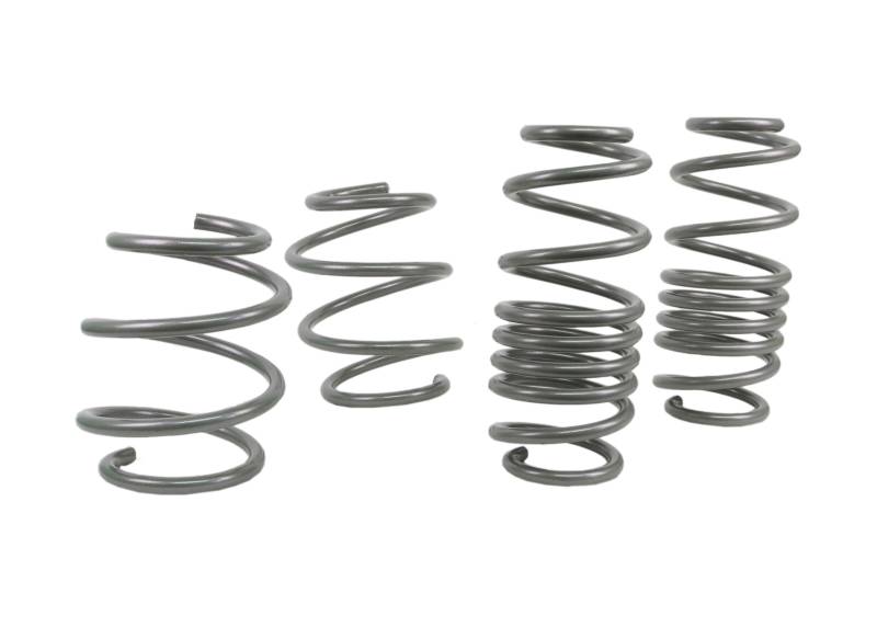 Whiteline Springs deliver improved vehicle performance whilst maintaining safety and ride quality characteristics. By lowering the vehicles centre of gravity the unique combination of linear and progressive rate coil springs not only improve performance but enhance overall appearance. Developed and manufactured in Europe from the highest quality materials coating and to the finest tolerances guaranteeing exact fitment. Whiteline Springs are engineered for optimal balance with OEM and aftermarket shocks. For total grip activation match with Whiteline Sway Bar and Essentials kit for unrivalled handling and optimal vehicle performance.