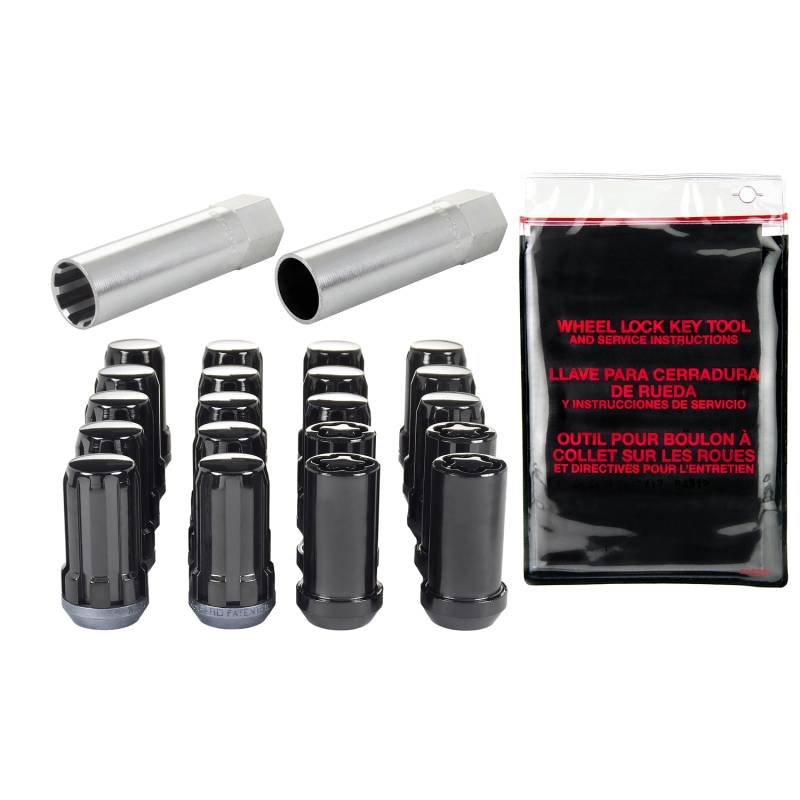 The convenient way to order Tuner wheel locks and lug nuts; contains all the hardware that you need to install 4 wheels and tires.; Why settle for ordinary lug nuts? SplineDrive Lug Nuts combine style and performance.; A no-compromise design engineered to fit small diameter recesses in Tuner style wheels.; SplineDrive lug nuts offer closed-end design, maximum gripping power, more stud engagement and a greater seating surface than socket style lug nuts.; In addition they are 30% lighter in weight.; Like all McGard lug nuts, the chrome with black PVD plating is guaranteed for life not to rust, chip or peel.; The easy-to-use, one-piece wheel locks function like regular lug nuts, but require a special key tool for installation and removal.; The computer generated key designs allow for an infinite number of key patterns.; McGard manufactures wheel locks and lug nuts in the USA to meet or exceed O.E.M.; standards for safety and durability.; Every lug nut and wheel lock is fully machined from restricted chemistry steel made specifically for McGard and through-hardened for its unsurpassed level of safety.; For use on aluminum cone seat wheels only.; This product may contain globally sourced materials/components.
